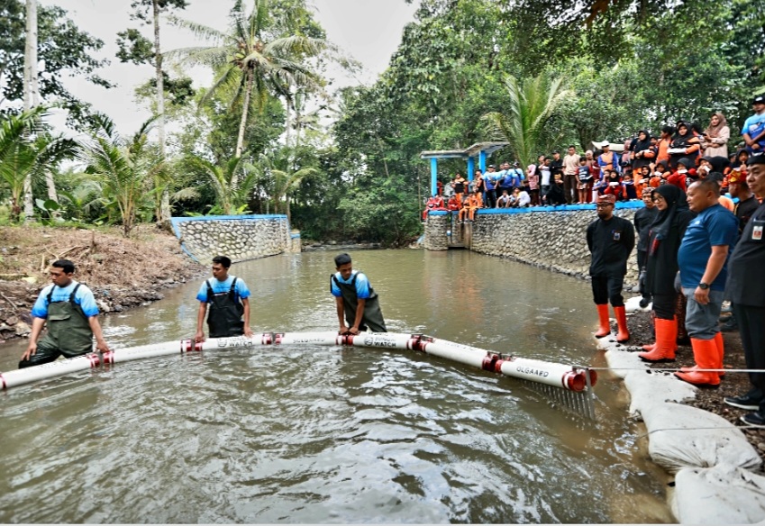 Bunga Desa di Kecamatan Songgon, Bupati Ipuk Pasang Trash Barier di Sungai