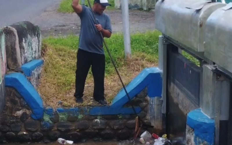 Banyuwangi, Aktualrakyat.com  – Upaya menjaga kelancaran jaringan irigasi kembali dilakukan oleh Dinas PU Pengairan Kabupaten Banyuwangi. Petugas Pintu Air (PPA) bersama tim lapangan diturunkan untuk melakukan pembersihan tumpukan sampah dan sedimen pada salah satu pintu air di wilayah Cluring. Sampah plastik dan material lain yang terbawa arus terlihat menyumbat aliran, sehingga mengganggu distribusi air ke jaringan irigasi pertanian.